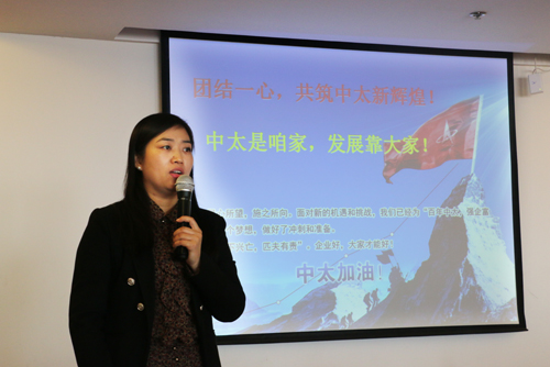 2月20日上午,中太建設集團職業化塑造和員工素養培訓在中太大廈17樓職教室舉行。集團工會主席、企業文化部總經理張娟娟作為主講人,從職業化基礎知識出發,闡述職業化定義和職業化素養內涵等內容,同時結合集團公司工作實際,圍繞職業化角色定位、職業化素養修煉、敬業、責任、規范、協作、執行力、積極性太塑造和感恩共九方面,與參訓人員共同分享培訓內容。“企業好,大家才能好!迸嘤栕詈,張娟娟總經理表示,面對新的機遇和挑戰,中太員工應該已經做好準備,用自己的實際行動推進公司發展,實現企業與個人的共同進步,一起向著實現“百年中太、強企富民”的美好愿景而努力奮斗。