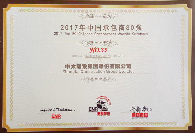 2017ENR/建筑時報“中國承包商80強和工程設(shè)計企業(yè)60強”榜單日前揭曉,中太建設(shè)集團成功入圍“2017年中國承包商80強”榜單,排名第35名,這是中太建設(shè)集團第8次入圍該榜單。