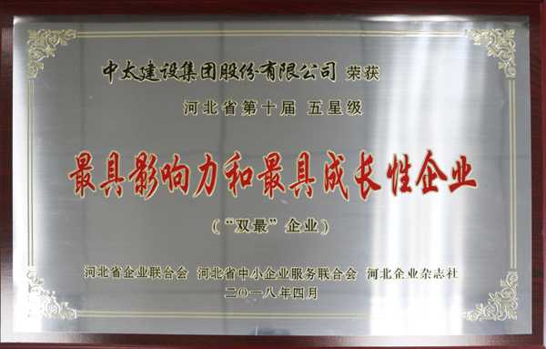 近日,河北省企業(yè)聯(lián)合會第六屆會員代表大會第二次會議暨2018年河北省企業(yè)管理創(chuàng)新大會在石家莊召開,會議通報《河北省第十屆“最具影響力”“最具成長性”“最受關注企業(yè)家”評審結果》。中太建設集團獲評五星級“最具影響力和最具成長性企業(yè)”(“雙最”企業(yè))、“河北省明星企業(yè)”,李文健同志被授予“最受關注企業(yè)家”、“河北省優(yōu)秀企業(yè)家”稱號。