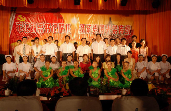 廊坊師范學院喬一風雨同舟組合和中太員工為大會獻上精彩的文藝表演,《情系人民》、《黨旗下中太人》、《繡紅旗》、《我愛你中國》等一個個主題鮮明的節(jié)目,充分展示了同學們及中太員工以飽滿的政治熱情,創(chuàng)作、排演了形式多樣、思想深刻、藝術(shù)精湛的文藝節(jié)目;一首首耳熟能詳?shù)母枨粋個真切感人的節(jié)目,讓在場的每一位觀眾、都感受到同學們對災(zāi)區(qū)人民的真切關(guān)愛之情。歌聲似春潮涌動,掌聲如林濤和鳴,大會在《明天會更好》嘹亮的歌聲中圓滿結(jié)束。集團領(lǐng)導觀看了演出并上臺接見演職人員,同他們合影留念。
