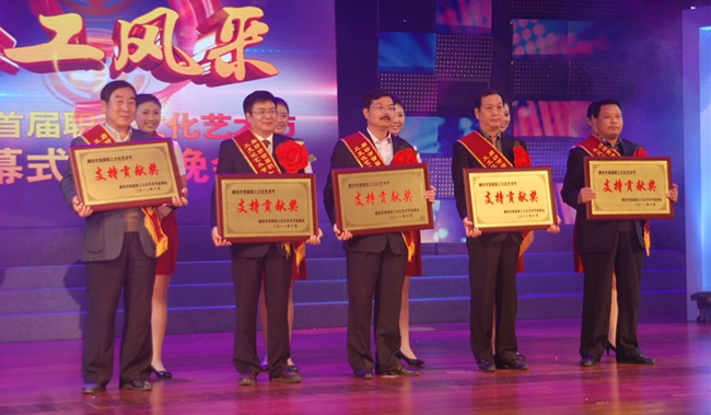 10月26日晚,廊坊市總工會在廊坊管道局影劇院隆重舉辦“職工風(fēng)采”廊坊市首屆職工文化藝術(shù)節(jié)閉幕式頒獎晚會。市委副書記吳曉琳等市領(lǐng)導(dǎo)到場觀看演出,并為獲獎人員頒獎。中太建設(shè)集團(tuán)等五家單位榮獲藝術(shù)節(jié)“支持貢獻(xiàn)獎”。受集團(tuán)董事局主席、黨委書記李文健委托,工會主席、黨委副書記鐘崇鶴(中)代表集團(tuán)上臺領(lǐng)獎。從5月到10月首屆職工文化藝術(shù)節(jié)期間,市總工會會同相關(guān)部門共組織了十大系列100項(xiàng)活動,其中組織各項(xiàng)比賽500余場次,2萬余名職工參加,取得了豐碩成果。 |