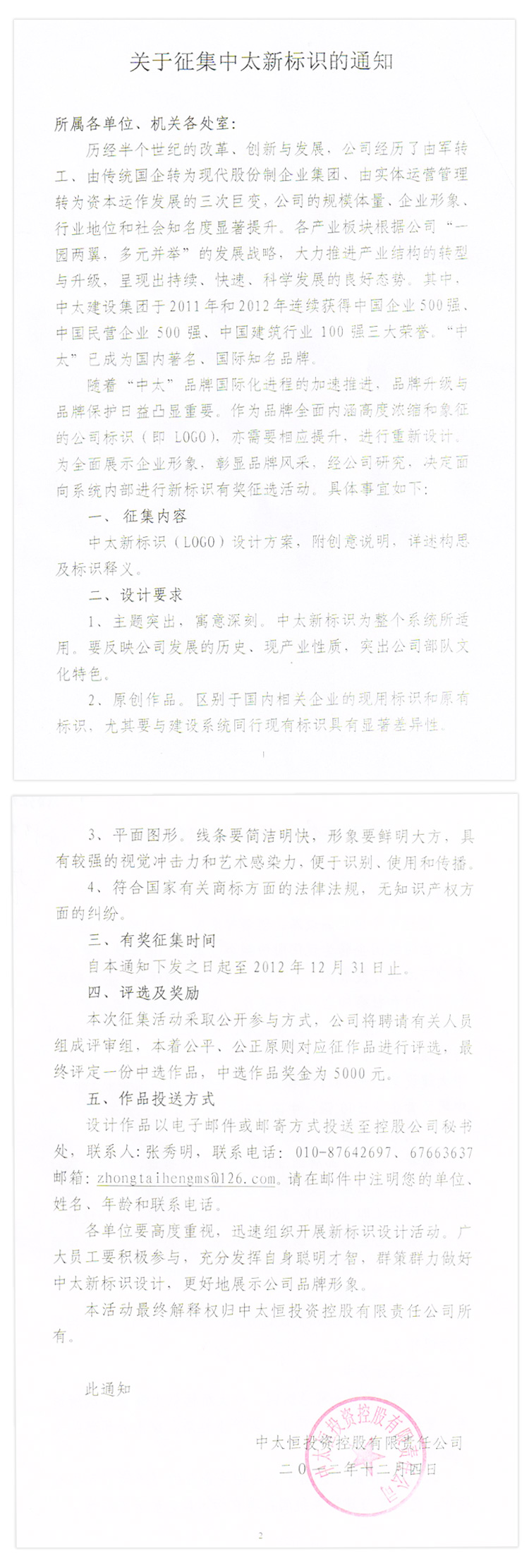 關于征集中太新標志的通知