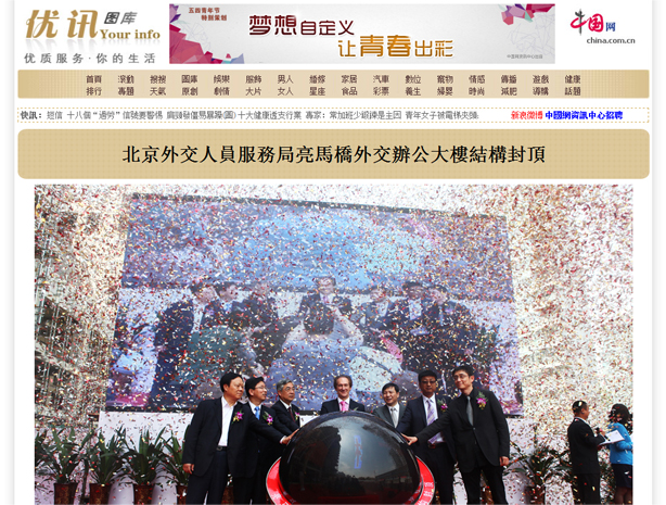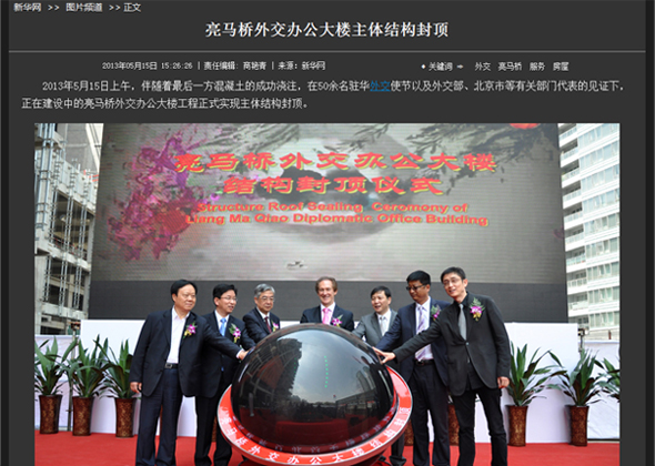 新華網、中國網等多家媒體報道了亮馬橋外交辦公大樓封頂儀式