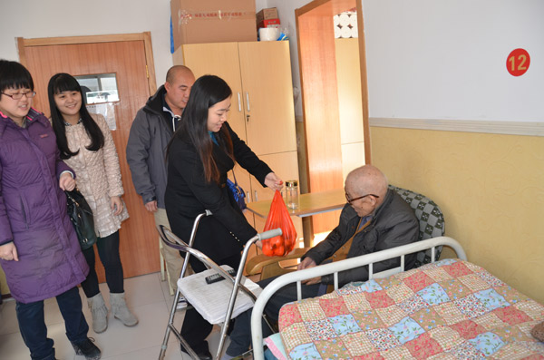 11月29日上午,在集團工會副主席張娟娟的帶領下,中太建設集團的12名團員青年代表,驅車來到中太康復醫院慰問老人、送去愛心,并給老人帶去新鮮的水果。到達醫院后,他們在康復醫院醫護人員的陪同下,進入病房與老人談心聊天,了解老人的吃住情況,并像醫護人員了解老人的住院治療情況,宛如一家人一般,一時間房間里充滿了濃濃親情。