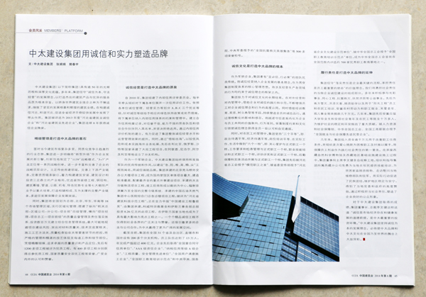 《中國建筑業》雜志2014年第6期報道了中太建設集團用誠信和實力塑造品牌