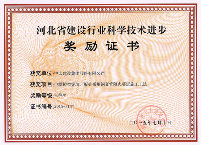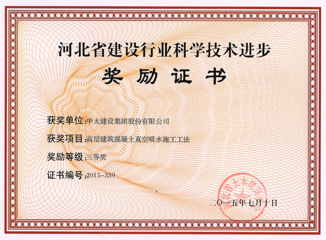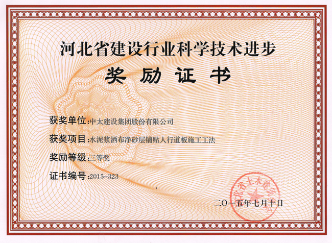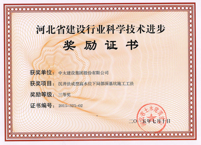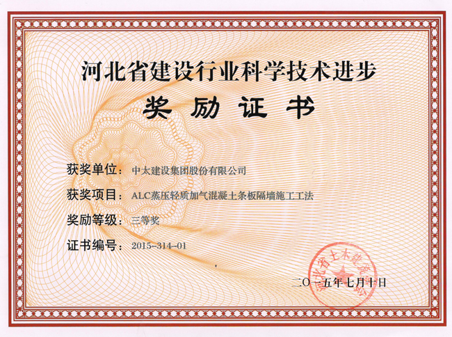 2015年河北省建設(shè)行業(yè)科學(xué)技術(shù)進步獎勵證書匯總