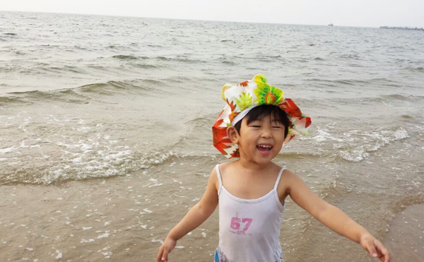 拍了照片后,突然讓我感覺像文清同學媽媽去澳門時住在海景房拍的海景照片! 看完海景就開始了匆忙的換泳衣準備下海,海景公寓的好處就是出來小區走上自己的棧道就是小區的私家海灘,非常干凈。近距離的接觸大海,吹著涼爽的風(天氣多云,溫度在29度),讓我們一行幾個馬上開懷起來,每個人的興奮在臉上流露。孩子是最興奮的,跑到海邊上,任憑海浪一層層的打過來(這天風并不大),孩子說:“媽媽,你看大海碰我了!”竟然用起了擬人句,把大海打過來的浪花比作在“碰”,這字用的多么美妙!我一邊欣賞著美景一遍在咂摸著這話,贊嘆著孩子的天真和用詞之妙。我們真的跳入大海浸泡的時候,舅舅在照顧著她,突然一個浪打在了孩子的頭上,孩子嚷著:“我要離開大海了”,這是在身邊的舅舅轉告我的,我在想孩子真是長大了,會表達很多個人的感情了,“啊,我要離開大海了”是一個陳述句,但是好像是表達著一種不舍得離開但是有不得已的感情,她很想在大海里再待一會,但是因為她被浪花打濕了頭發,依她個人的膽量可能害怕了,所以說了句“啊,我要離開大海了”,孩子的成長讓我們自覺不自覺真切感受到了。然后她自己在海灘玩沙子,挖了大大的沙坑,每當海浪沖過來的時候,總是興奮的說:“媽媽大海幫我大忙了,還給其他家人也興奮的嚷嚷,大海可是幫了大忙了”。當我問她到底幫了什么忙時,她說:“大海給我的沙坑送來了水啊”(估計是她不用拿著自己的小碗去海邊舀水了)。我感嘆著女兒的天真浪漫和快樂興奮,內心在想:帶著孩子出來玩玩是多么對的選擇,大自然的風光的確是能刺激人的靈感,說了那么多令我平時聽不到的妙字妙語。這趟短途旅行意義非凡!